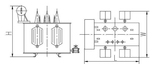 無儲油柜,箱蓋裝有QYW型變壓器保護裝置(氣體施放,壓力保護和溫度控制集一體的多功能保
